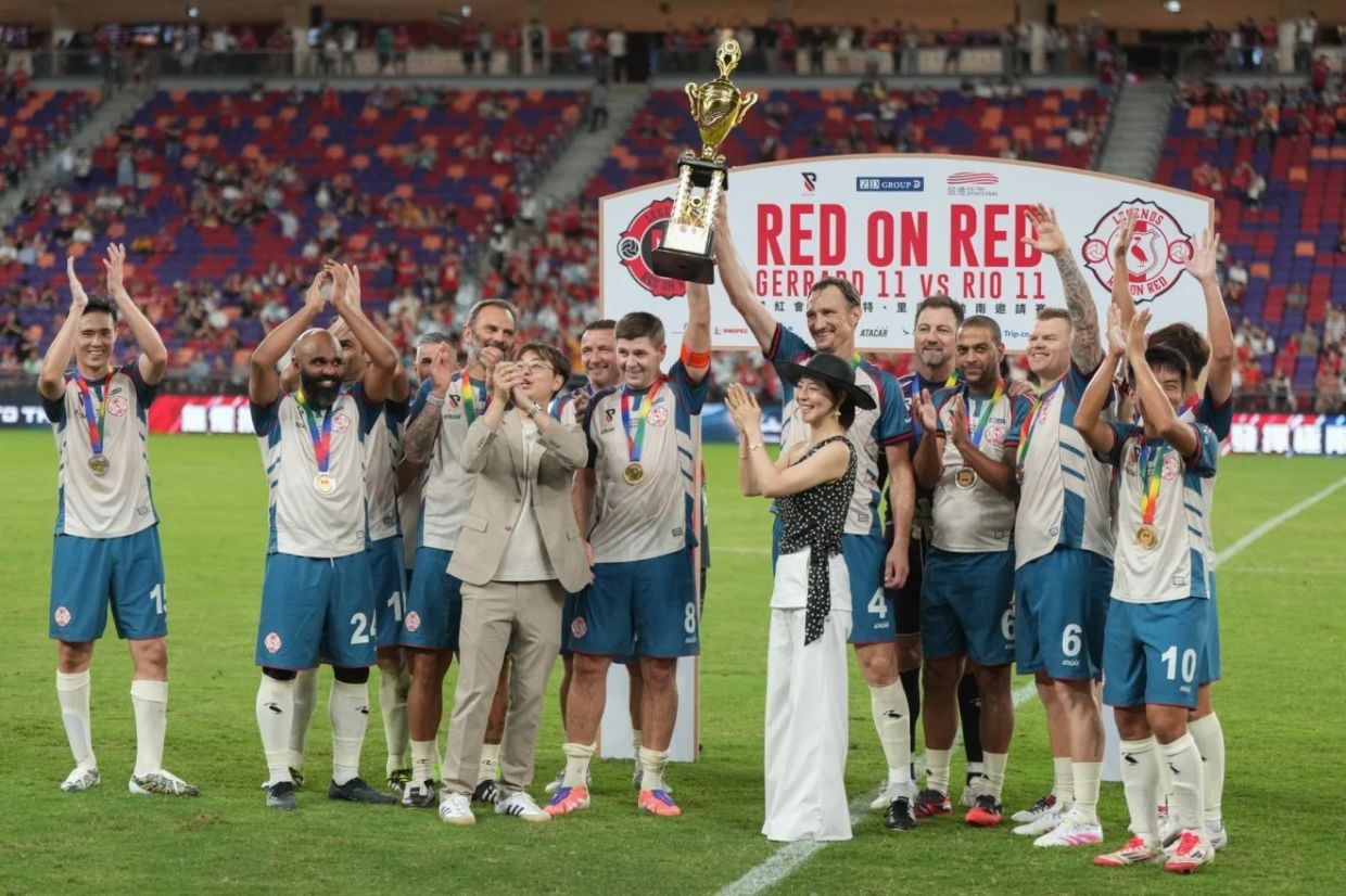 Aksi berkenaan dinamakan 'RED on RED: Gerrard 11 vs Rio 11' memandangkan Steven Gerrard mengetuai bekas bintang skuad The Reds sementara Rio Ferdinand diangkat sebagai kapten pihak lawan dibarisi legenda The Red Devils.