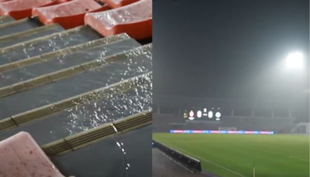 Menerusia video yang dimuat naik oleh pasangan dikenali sebagai The Passport Couple itu menunjukkan penyokong masih setia menyaksikan perlawanan dalam hujan lebat sehingga stadium kelihatan hampir dinaiki air.