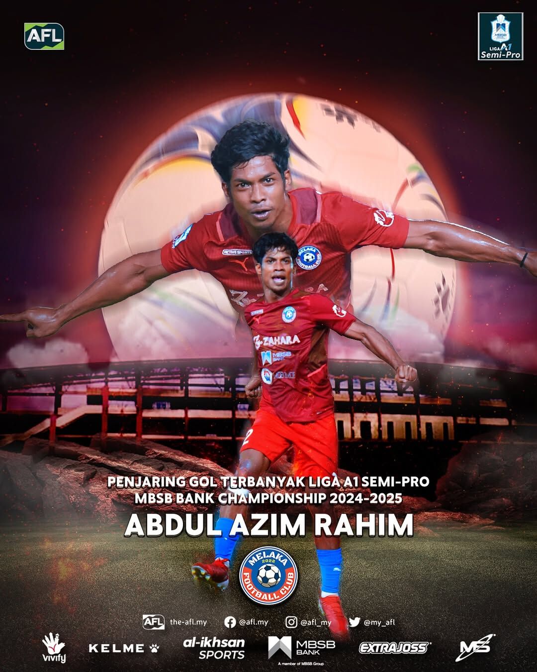 Ketajaman Azim Rahim membantu skuad Hang Tuah muncul juara Liga A1 Semi Pro musim lalu. — Facebook/AFL