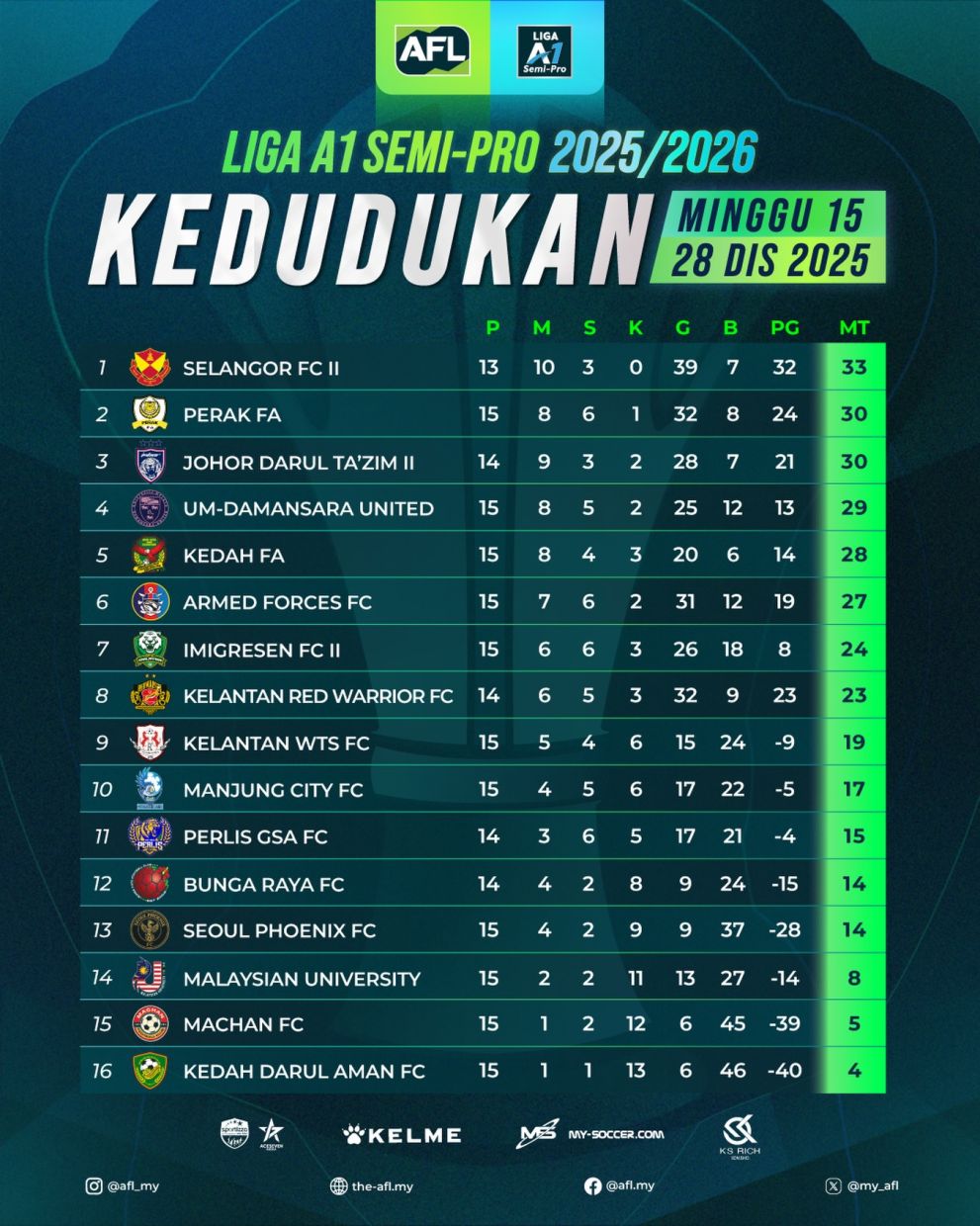 Antara yang mengekori rapat kelab Lembah Klang berkenaan merupakan Perak FA yang berada di tangga kedua dengan hanya tiga mata dibezakan berbanding pendahulu.