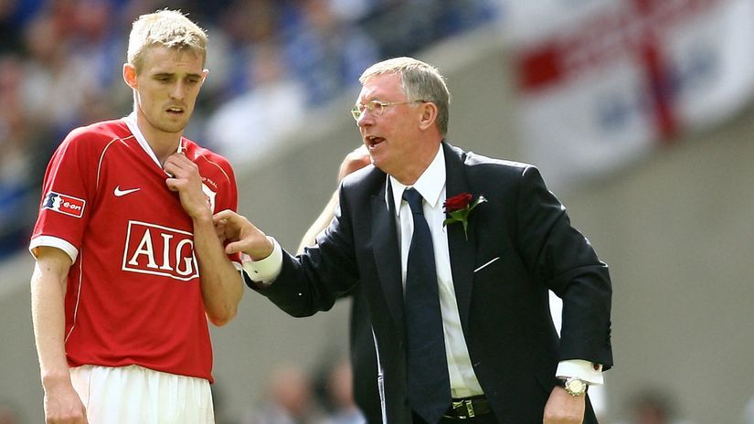 Fletcher (kiri) merupakan orang penting Ferguson di bahagian tengah semasa karier bermainnya.