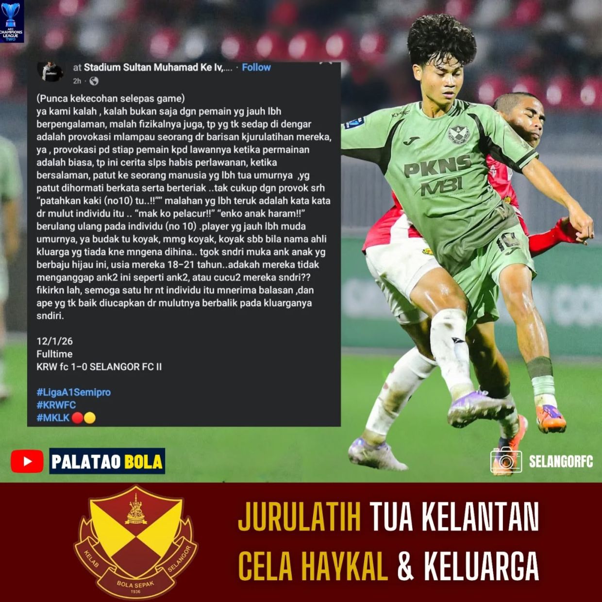Lebih mengejutkan lagi, terdapat cemuhan terhadap ibu salah seorang pemain Selangor FC II yang sepatutnya tidak dilontarkan dalam situasi sebegitu.