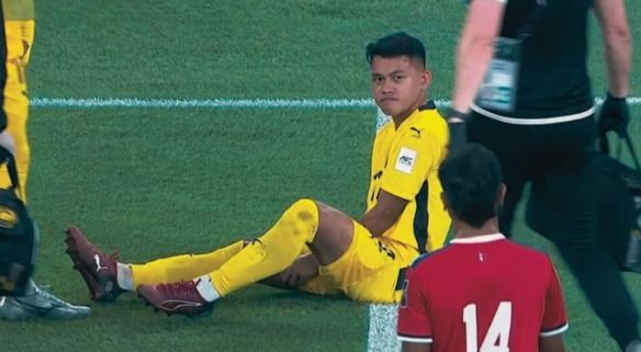 PEMAIN itu terpaksa dikeluarkan selepas dikasari pemain lawan dalam aksi Kelayakan Piala Asia 2027 menentang Nepal.